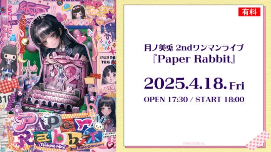株式会社ドワンゴは、ライブ配信サービス「ニコニコ生放送」で、4月18日(金)に、VTuber / バーチャルライバーグループ「にじさんじ」所属の月ノ美兎(つきのみと)2ndワンマンライブ『Paper Rabbit』本編を18時から会場のJ:COMホール八王子(八王子市)より独占生配信します。