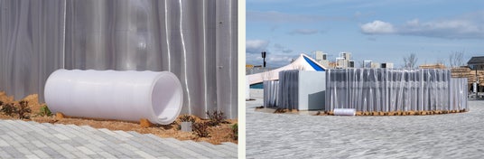 ベンチの設置場所は大阪・関西万博会場内トイレ施設「島の蜃気楼」周辺の屋外で、来場者は2台のベンチに自由に座り、デザインの手触り感も楽しむことが可能です。