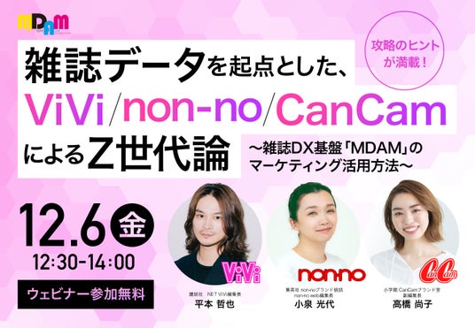 雑誌DX基盤「MDAM」に蓄積された雑誌データの分析を通して、10代後半~20代前半向けに情報発信を続ける3メディアの編集者とデータサイエンティストが、Z世代へのマーケティング攻略のヒントを語ります。