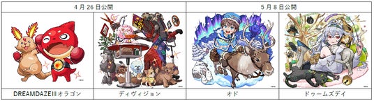DREAMDAZE III入場チケットを購入し、ご来場いただいた方全員に、DREAMDAZE III 来場特典 オラゴン「DREAMDAZEIIIオラゴン」を5体プレゼントします。「DREAMDAZEIIIオラゴン」は、「ディヴィジョン」「オド」「ドゥームズデイ」「オオクチノマカミ」「クラフト」に素材として使用すると、DREAMDAZE III 限定の描き下ろしデザインに変更できます。本日、「オオクチノマカミ」「クラフト」のラフを公開し、全6体のラフが公開となりました。※各イラストは開発中のものです。