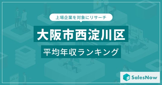「誰もが活躍できる仕組みをつくる。」をミッションに掲げ、セールスチームの武器となるデータベース「SalesNow」を展開する株式会社SalesNow(本社:東京都渋谷区、代表取締役:村岡功規、以下「SalesNow」)は、国内540万社の企業情報を完全網羅した日本最大級のデータベース「SalesNow DB」より、大阪市西淀川区に本社を置く上場企業の年収ランキングを調査しました。