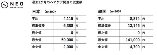 ■過去1か月のヘアケア支出額は韓国が圧倒的。