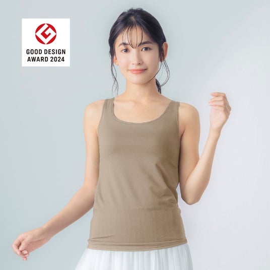 今回グッドデザイン賞を受賞した[シンクロブラトップ]は、アンダーゴム不使用でラクなつけごこちながら、きれいなバストシルエットにととのえるブラトップ。“女性たちの毎日を快適で美しいものにしたい”という想いで、下着メーカーが本気でつくった商品です。