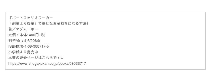 本書では、「私にもできたから誰にでもできる」という著者が、ポートフォリオワーカーとして成功する秘訣を大公開!「好きなことだけして稼ぐ」生き方を指南します。
