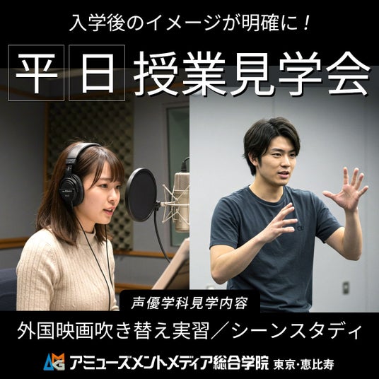 エンタメ業界のプロを育成するアミューズメントメディア総合学院(東京渋谷、理事長:吉田東吾、以下AMG)は、実際の授業や在校生・講師の雰囲気が分かる、見学会の実施をお知らせいたします。