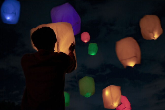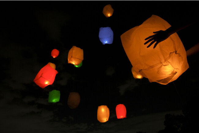 七夕の時期に合わせて、短冊に願いを書く代わりに、願いごとをランタンに書いて飛ばすイベント。みなさまの願いが、星に届きますように。