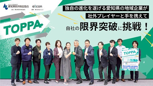 日本最大級のオープンイノベーションプラットフォーム「AUBA(アウバ)」を運営する株式会社eiicon(エイコン 本社所在地:東京都港区虎ノ門、代表取締役社長:中村 亜由子、以下「eiicon」)は、愛知県信用保証協会(理事長:石原君雄)が主催し、eiiconが運営するオープンイノベーションプログラム『TOPPA(トッパ:以下「本プログラム」)』にて、本プログラムに参画する愛知県内の企業3社「株式会社北川組」「共立産業株式会社」「株式会社トラスト」と各社の募集テーマを発表し新規事業を目指す共創パートナー企業の募集を開始したことをお知らせいたします。
