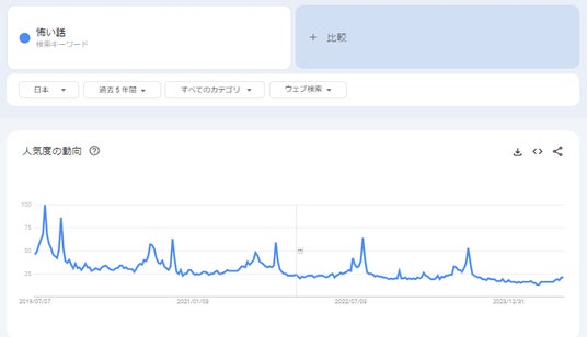 また、検索ワード「怖い話」は年間を通して8月中旬が最も検索ボリュームが多く(Googleトレンド調査)、本作はお盆シーズンでの特需が見込める書籍となっております▼