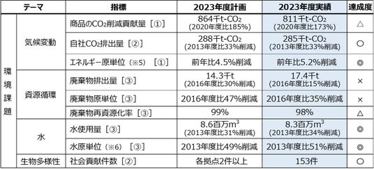 2023年度はカーボンニュートラル、サーキュラーエコノミーの実現に向けて、脱炭素・循環型社会の促進、環境配慮商品の拡販など、環境負荷低減と気候変動の緩和と適応に貢献する取り組みを強化しました。