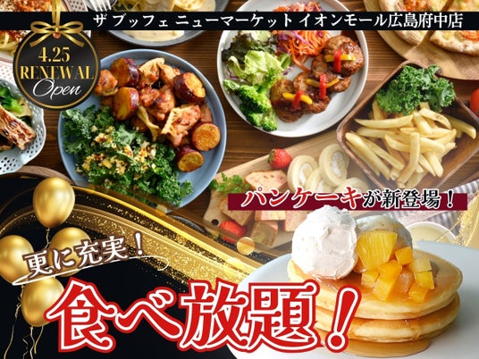 世代を超えて楽しめるアソート広島府中店が、2024年4月25日(木)より装い新たに「ザ ブッフェ ニューマーケット イオンモール広島府中店」としてリニューアルOPENいたします。