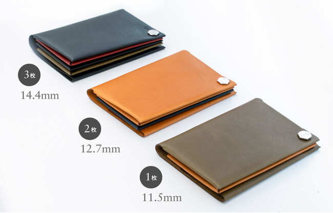 収 納:レイヤー1つにつき小銭5~10枚、カード2~3枚または名刺4~5枚が収納可能(カードや名刺の大きさにより異なります)