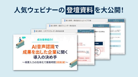 株式会社アドバンスト・メディア(本社:東京都豊島区、代表取締役会長兼社長:鈴木清幸 以下、アドバンスト・メディア)は、ご好評いただいたウェビナー「成功事例紹介!AI音声認識で成果を出した企業に聞く導入の決め手~帳票入力の効率化で業務時間3割削減~」の登壇資料を公開いたします。
