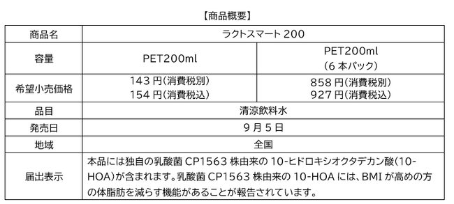 今回、甘さ控えめ・脂肪ゼロの『ラクトスマート200』を発売し、甘ずっぱいおいしさを楽しみながらBMIが高めの方の体脂肪を減らすことを提案し、お客さまの健康価値創造に貢献していきます。