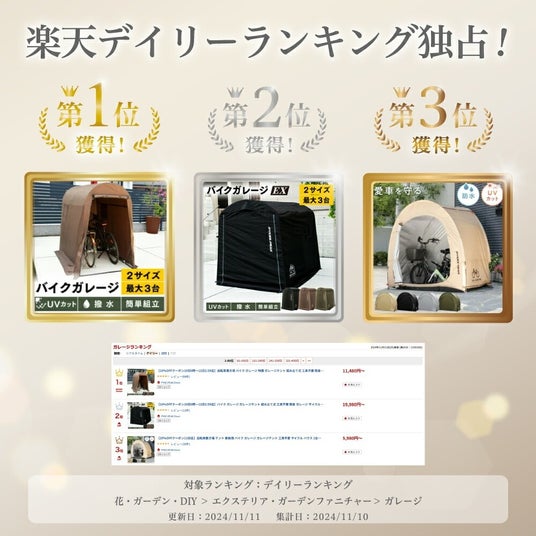 PYKES PEAK(パイクスピーク)のバイクガレージは、2024年の楽天ランキング・ガレージカテゴリーで自社の3商品がランキング独占した実績を誇ります。これは、多くのお客様からの信頼の証でもあり、安心して選ばれる理由となっています。