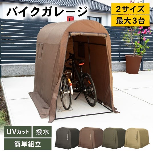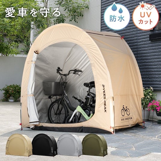 PYKES PEAK(パイクスピーク)のバイクガレージは、雨風・日差し・埃からバイクや自転車を守る屋外収納シェルターです。耐久性・撥水性に優れた高機能ポリエステル素材を採用し、PUコーティング加工で最大2,000mmの耐水圧を実現。さらに、シームテープ加工やUPF50のUVカット加工により、愛車の劣化や色あせを防ぎます。