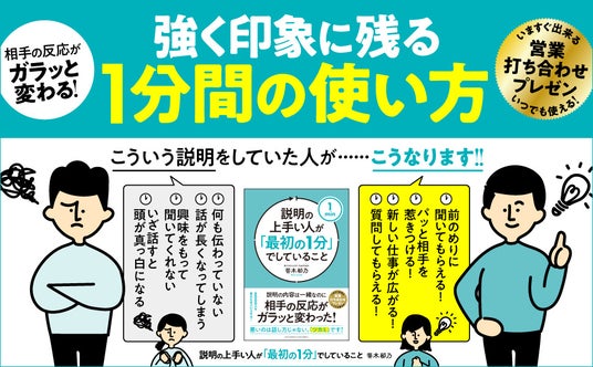 ビジネス書や実用書を中心に出版する株式会社クロスメディア・パブリッシング(本社:東京都渋谷区、代表取締役社長:小早川幸一郎)は、2024年9月5日に書籍『説明の上手い人が「最初の1分」でしていること』の第2版重版を実施しました。本書は、エアウィーヴやバーミキュラが無名から全国区に飛躍したときの広報を手掛け、PRの力で数多くの会社の成長に貢献してきた著者・笹木郁乃さんが「ほんの1分で相手を惹きつける説明」を解説した一冊です。