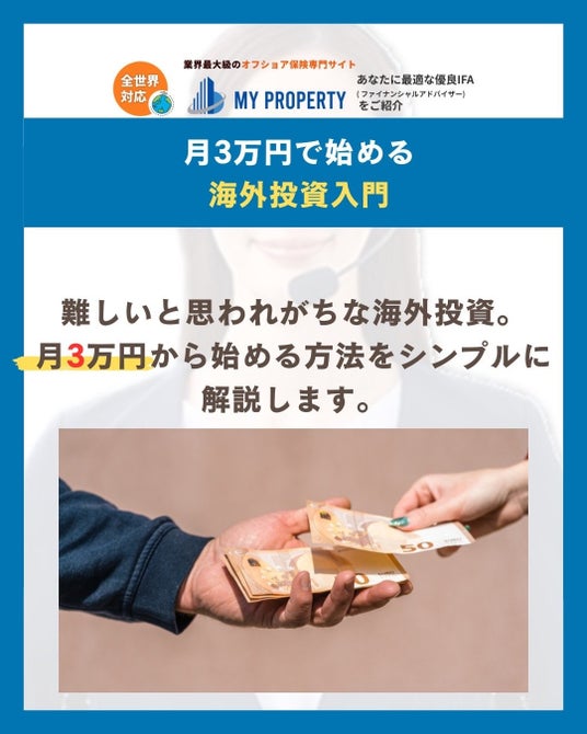 老後資金・お子様の教育資金・相続対策としてまとまったお金を用意するなら、『オフショア投資・保険のマイプロパティ』にご相談ください。