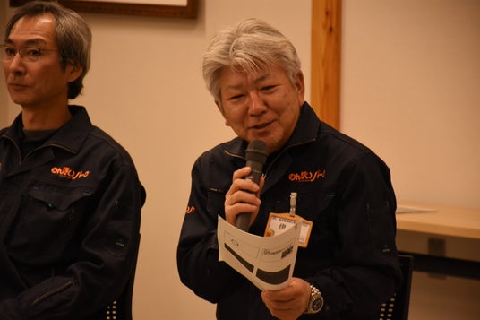 大きな拍手で迎えられた田中さんは、高見一利動植物園長から贈られた「田中」のネーム入りスタッフジャンパーに袖を通し、伊藤紀治公園長から「一日公園長」のタスキを掛けてもらいました。「うれしいです」と田中さん。「きょう一日、目いっぱい働きます」「これから、すきあらば『のんほい』と言って豊橋をPRできれば」と話し、早速、会場を沸かせました。