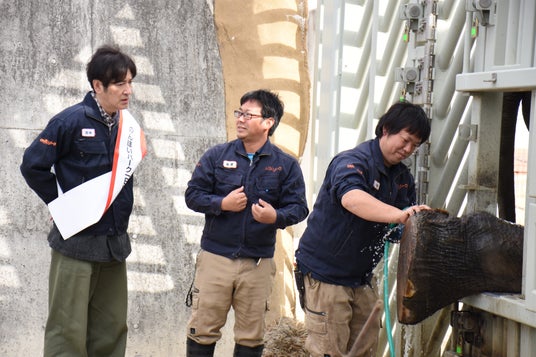 最後はゾウと対面しました。53歳の雄「ダーナ」と田中さんは、1971年生まれの同い年で「親近感がわきました」。ダーナが飼育員に大事な足裏のケアをしてもらう様子を見学しました。
