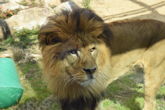 ライオンの様子を観察する田中さん