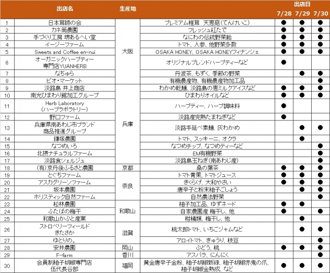 Umekiki Marché 出店生産者(全30生産者)