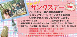 今年は新たに屋外エリアの増席を行い、より多くのお客様にご利用いただけるよう施設の整備、サービスの充実に努めて参ります。また、4月23日(土)、24日(日)、5月7日(土)、8日(日)の4日間限定で、「スペシャルサンクスDAY!」を初開催し、該当日にバーベキュー場をご利用の有料のお客様全員に、ソフトクリームやビールが選べる引換券をプレゼントいたします。