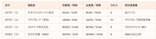 ※ 運航スケジュールの変更等により、当日飛来できない場合がございます。あらかじめご了承ください。また、その他の航空会社の特別塗装機の情報は本イベントWEBサイトで随時お知らせします。