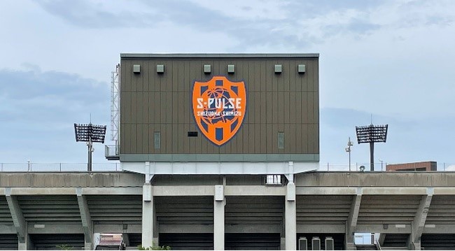 スタジアム外観に清水エスパルスのビッグエンブレムを施工