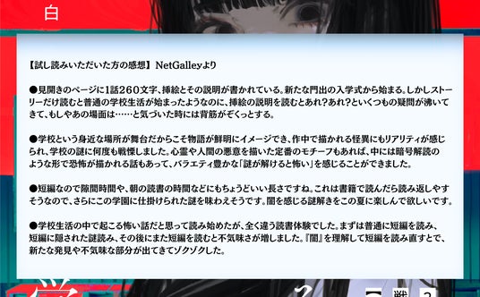 今回のリリースでは、『意味が分かると怖い話』シリーズで累計40万部を突破したベストセラーホラー作家 藤白 圭 によるオリジナル書き下ろし連続ストーリー『謎が解けると怖いある学校の話』をご紹介します。