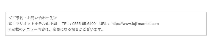 詳細はホテルWEBサイトをご覧ください。 https://www.fuji-marriott.com/