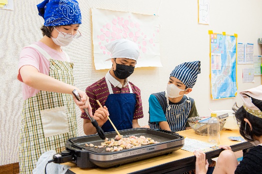 「テラコヤキッズ」は、将来的に子どもたちが自立することを目指し、やりたいことに向かって挑戦する力や、自立に欠かせない就職に必要な力を学ぶことを大切に運営されています。「PAKU MOGU」を使った食育教室では、10名の子どもたちが2チームに分かれて調理。職員の方々にサポートしていただきながら、食材を切る・炒めるほか、「きゅうりを叩く」など初めての調理工程にもチャレンジ!自発的にチーム内で協力しあい、レシピとにらめっこしながらも完成させることができました。