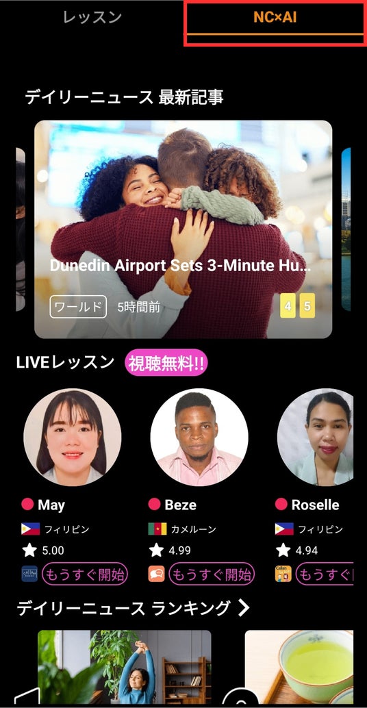 - ネイティブキャンプアプリを起動(PC版は対応しておりません)