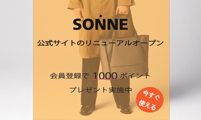 「公式サイトのリニューアルオープンを記念特典」1000円分のポイントプレゼント!!https://sonne.jp/