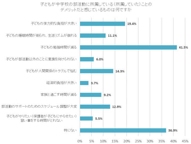 保護者が感じている、子どもが中学校の部活動に所属していることのデメリットを聞いた。