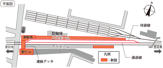 奥沢駅では目黒線利便性向上に向けて各種改修工事を進めてきましたが、2022年3月12日の目黒線ダイヤ改正にあわせ、通過線および新たな上りホームの供用を開始し、目黒線の朝ラッシュピーク前の一部急行列車の速達性向上と利便性向上を図ります。また、新たな上りホームは、2022年4月上旬から順次開始される目黒線の8両編成化に向け、8両分の全乗降口にホームドアを設置するとともに、上屋をホーム全ての範囲に整備すること
