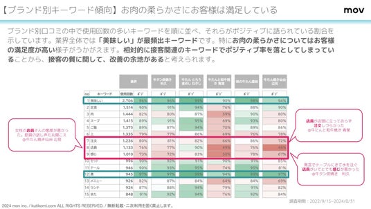 ■【ブランド別キーワード傾向】お肉の柔らかさにお客様は満足している