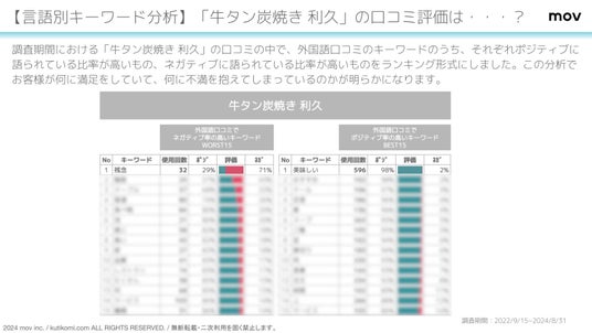 ■【言語別キーワード分析】「牛タン炭焼き 利久」の口コミ評価は・・・?