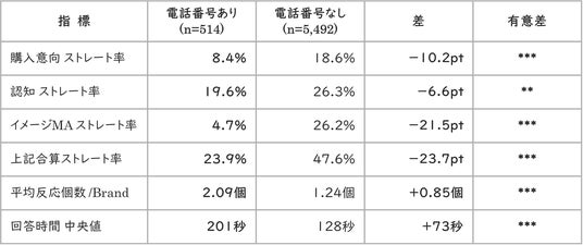 電話番号を回答した方の割合は全体の約8.6%にとどまっており、本結果は「電話番号の任意入力が品質向上やFraud回答対策として有効であること」を保証するものではありません。