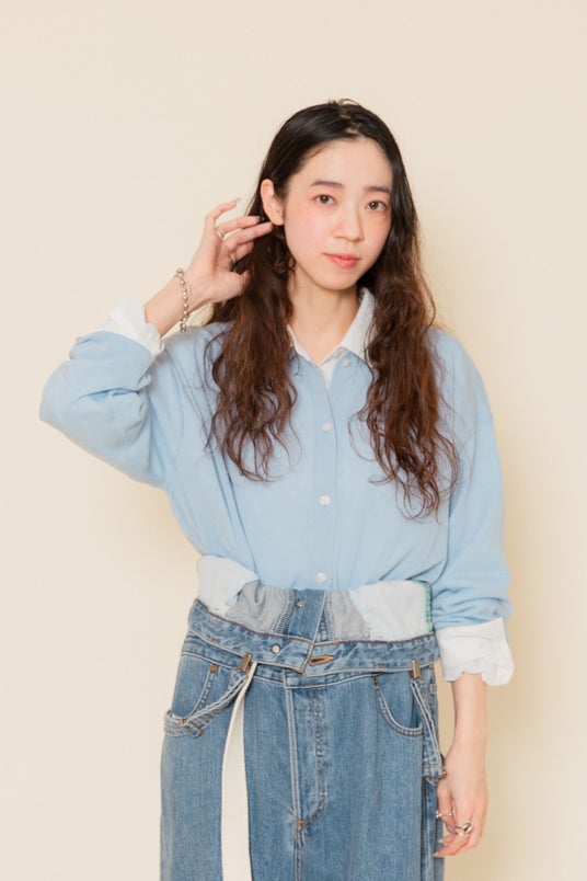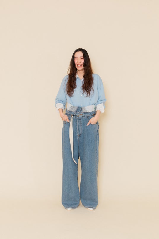 下半身の位置と、寸胴気味なのを気にされていたので、ハイウエストのボトムを探していたところ、オーバオールが2wayで折り返しして履けると三笘さん(さすが敏腕ショップ店員)が教えてくれたので、折り返しできるのは寸胴さんには腰回りに凹凸ができ一石二鳥!ということで即決。トップスも透けを活かしてシャツonシャツのレイヤード。1番ハードルが高いコーディネートでしたが、華奢さとどんなテイストもこなせる三笘さんでしたので、お似合いでした。
