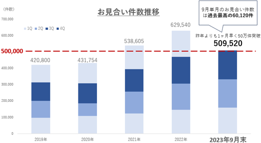 成婚数 国内最多¹の結婚相談所プラットフォームを運営している株式会社IBJ(代表取締役社長:石坂茂、本社:東京都新宿区、東証プライム:6071)は、2023年9月のお見合い成立数が、単月最多となる60,120件となり、年内のお見合い成立数(累計)が過去最速で50万件を超えました。