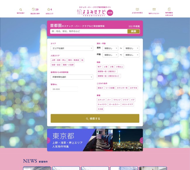 第一興商グループは、スナック・バー・クラブなど、夜のお店に特化した物件情報サイト「よるみせナビ」を4月1日に開設します。