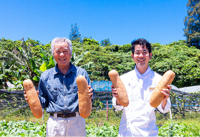 恩納村や近隣市町村の農水産物を取り扱う「おんなの駅」のご協力を得て、8名のシェフが恩納村、うるま市、沖縄市の農家さんの畑に出かけて食材を吟味し、素材の良さを引き出す調理法でスペシャルな料理とスイーツ「シェフの一皿」に仕上げました。小規模で農業を営まれる農家さんとシェフが直接交流することで、市場に出回りにくい貴重な食材をシェフが見出したり、その食材を使って新しい料理が生まれたり、農家さんに新しい野菜をリクエストしたり、当ホテルが推進するSDGsおよび「地産地消」に新しい動きが生まれます。