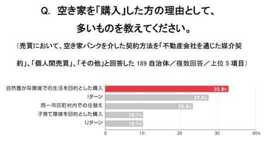 ■空き家の購入理由は「自然豊かな環境での生活を目的とした購入」が3割超