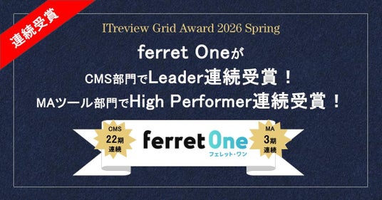 株式会社ベーシック(東京都千代田区、代表取締役:秋山 勝、以下「当社」)は、アイティクラウド株式会社(東京都港区、代表取締役社長:黒野 源太)が主催するアワード「ITreview Grid Award 2026 Spring」において、当社が提供する、BtoBマーケティングにおける課題をまるごと解決するサービス『ferret One(フェレットワン)』が、「CMS部門」では、満足度・認知度ともに優れた製品として「Leader」を22期連続で受賞し、「MAツール部門」では「High Performer」を3期連続で受賞したことをお知らせいたします。