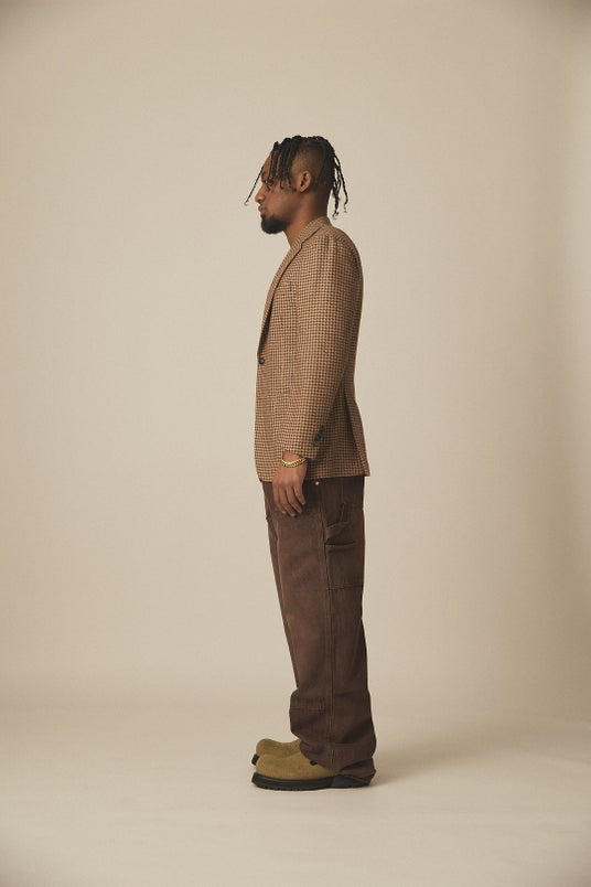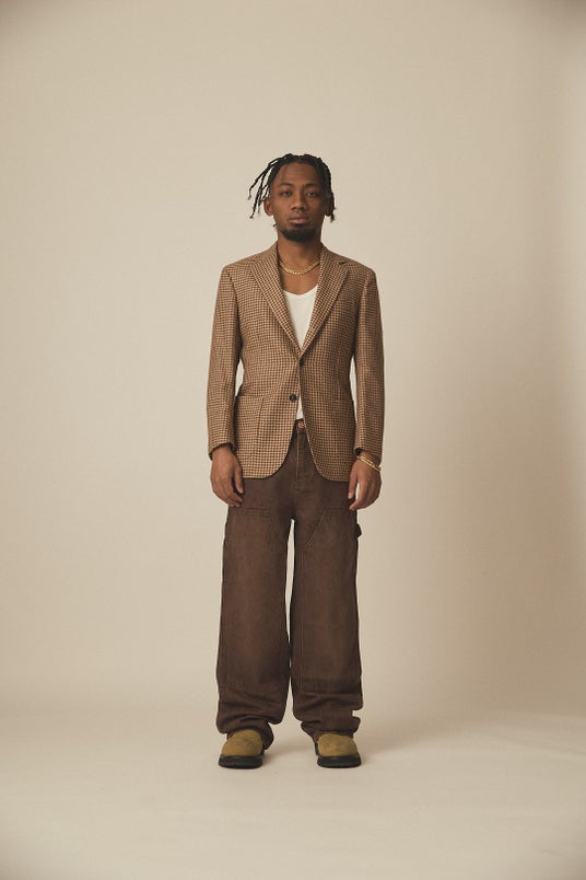 ディテールには膝部分を2枚構造にして耐久性を上げるアメリカの作業員が好んで着用していたダブルニー構造を採用しつつ、リベットなどの各パーツは全てアンティークゴールドで仕上げてヨーロッパテイストをプラスしたUS x EUスタイルに仕上がっています。
