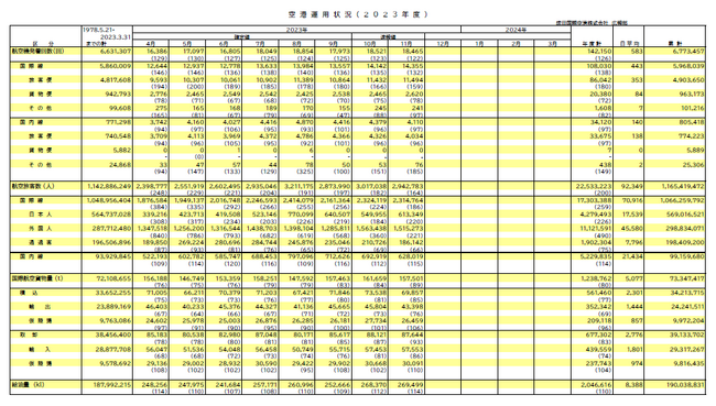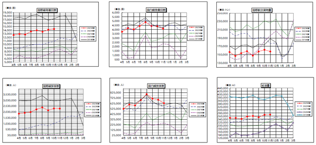 発着回数は、11,494回(前年同月比159%、2019年同月比78%)となりました。