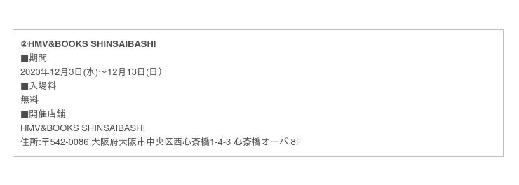 HMV&BOOKS SHIBUYA/SHINSAIBASHIにて写真展を開催!