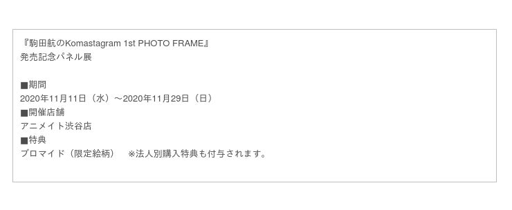 『駒田航のKomastagram 1st PHOTO FRAME』