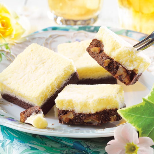 ジンで風味付けしたカカオの香り豊かな生地にくるみを入れ、チーズチョコレートとクリームチーズを練り込んだ生地を重ねて焼き上げました。ジンの香りやチーズの程よい酸味、くるみの香ばしさが、濃厚なチョコレートと相性ぴったりのおいしさです。