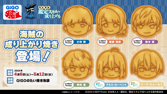 株式会社GENDA GiGO Entertainment(本社:東京都港区 代表取締役社長:二宮一浩 以下、当社)は、「U-NEXT Pirates」と「転生貴族、鑑定スキルで成り上がる」のコラボレーションを記念して、『海賊の成り上がり焼き』を4月6日(土)よりGiGOのたい焼き池袋で販売いたします。